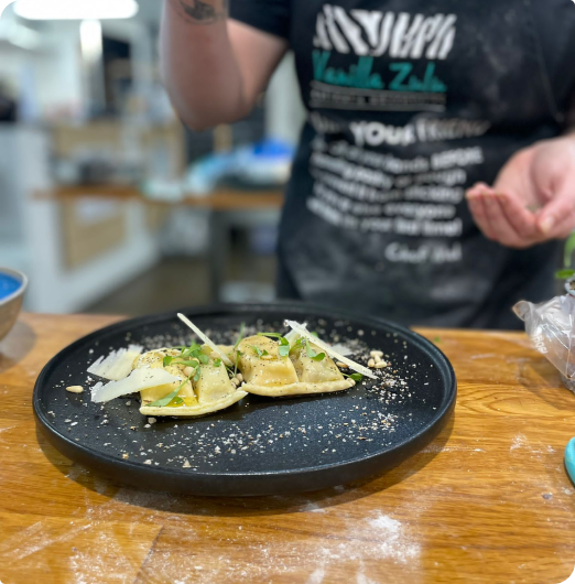 Your Express night begins with a heart-warming welcome, introduction and chat with your fellow budding chefs. Then pop on your apron, get into the kitchen and start cooking. You will work in small groups of about two on a table of four as your Chef guides you step by step. In this class you will learn the tricks and tips to making authentic Italian pasta. Everything is made from scratch! This class is fun, informative and will teach you how to produce stunning authentic dishes that are steeped in tradition and flavour!